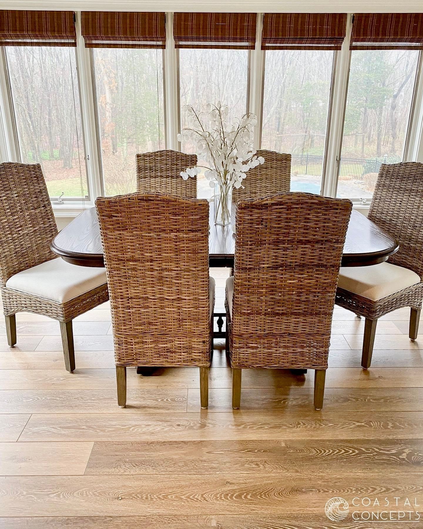 - Woven woods add luxury and warmth